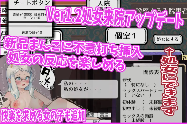 婦人科にやってくる普通の女の子たちを脱がせて、無防備な身体を堪能しよう。性器に触れ、採尿、診察。気に入った娘がいれば、おまんこにハメちゃおう。