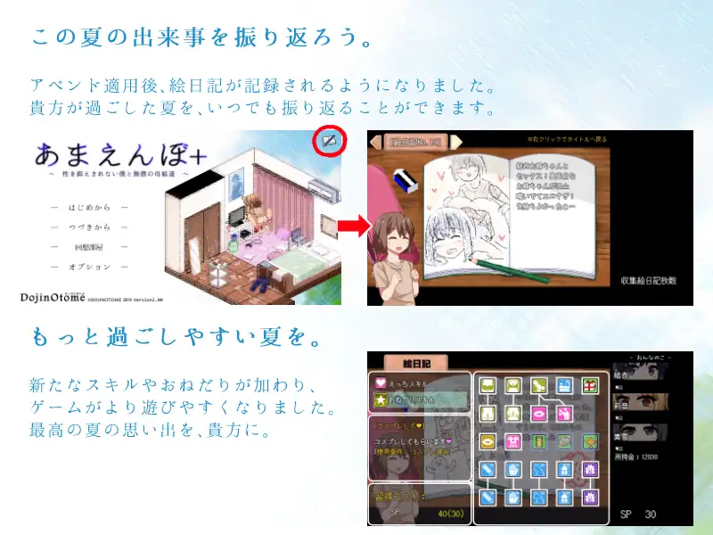 もっと、思い出に残る夏―――本編「あまえんぼ」が更に進化する追加パッチ!もっとエロエロな夏休みを満喫しよう!
