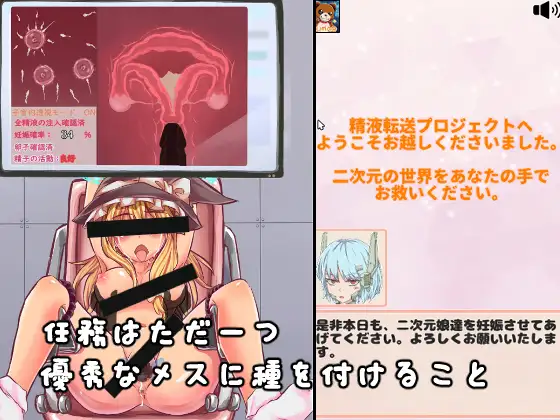 2次元で少子化が深刻化、そこで3次元に緊急要請が!?アンドロイド娘はこう言った。「あなたの精液を2次元に送り込んで女の子を妊娠させてください。」