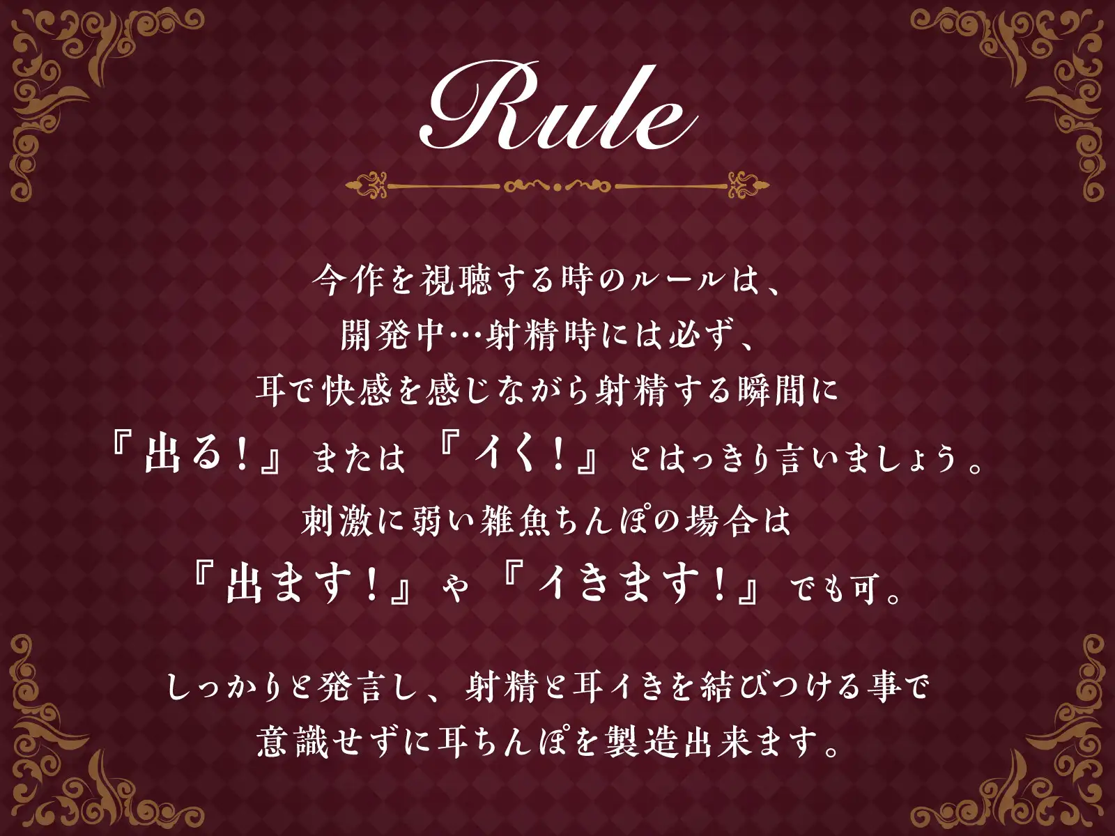耳舐め慣れしているあなたの耳を、これまでにない敏感名器に徹底開発します。 昨日までアソコで感じていた快感が、耳を舐められるだけで... レッスンの結果、耳舐めだけで勃起→射精をすんなり行えるように。 そんな敏感な耳イきを覚えた身体で通常のオナニーをしたら...上も下もWでイき地獄!一瞬で精巣空っぽです。