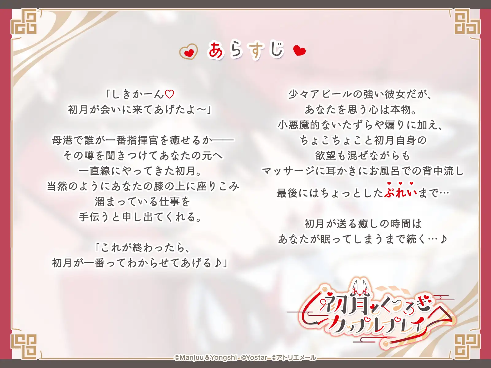 RJ01292767 - 【アズールレーンASMR】指揮官を癒やし隊!初月とくつろぎカップルプレイ