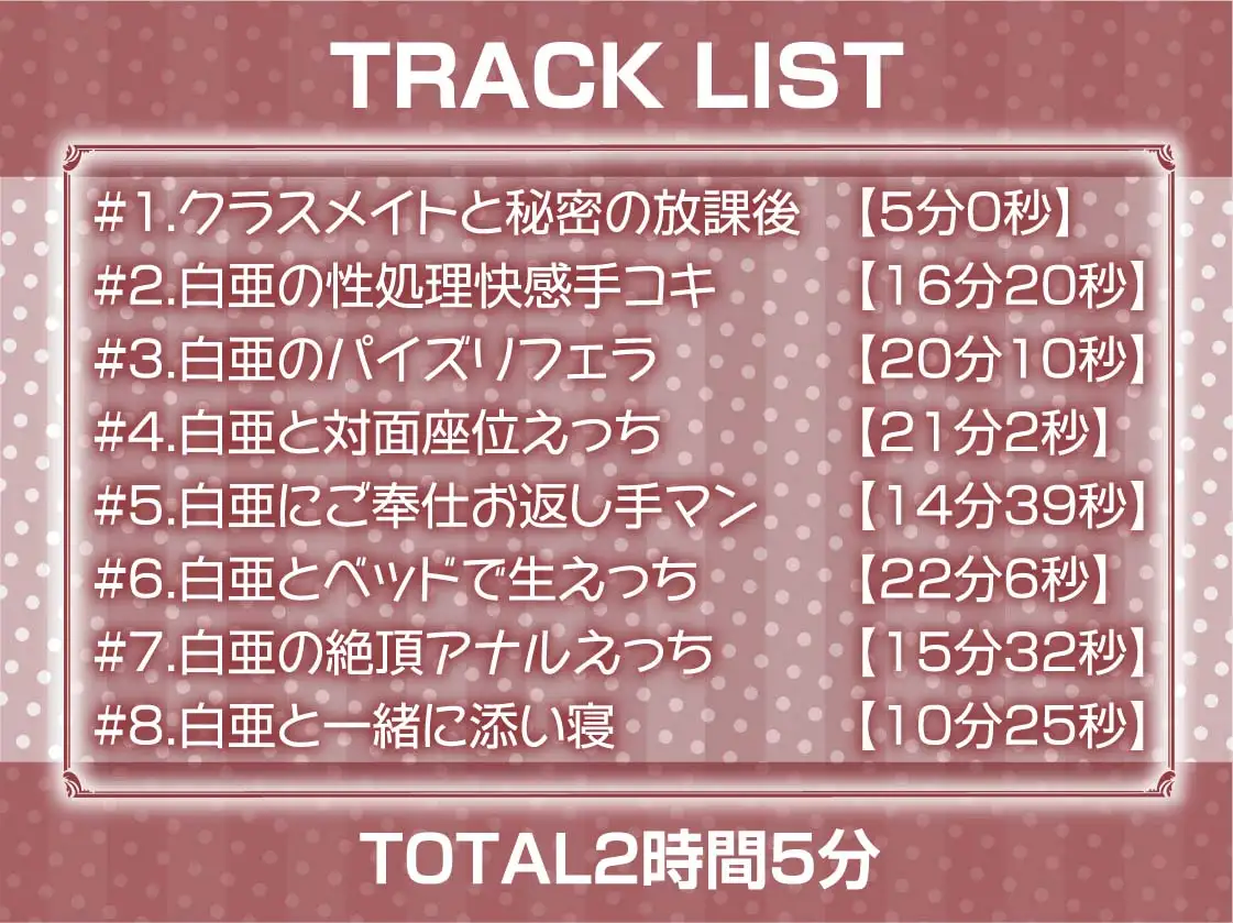 クラスでは目立たない 大人しめの女の子の白亜... そんな彼女に放課後は 性処理をしてもらっている! 今日もキスして手コキに パイズリフェラに 対面座位えっち! 彼女のお家でも 手マンして生えっち! さらには念願の アナルえっちもしてもらい...