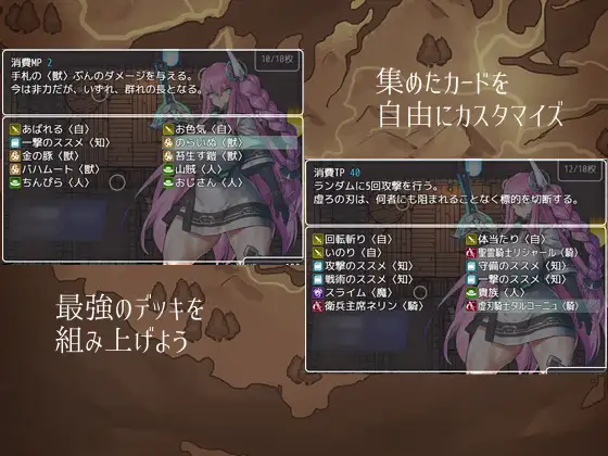 カードを集めてデッキを強化、手強い女騎士に挑め!