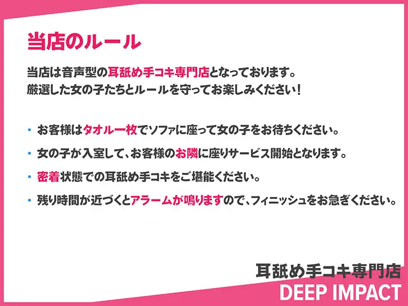 【総勢10名】耳舐め手コキ専門店『DEEP IMPACT』【2時間20分】