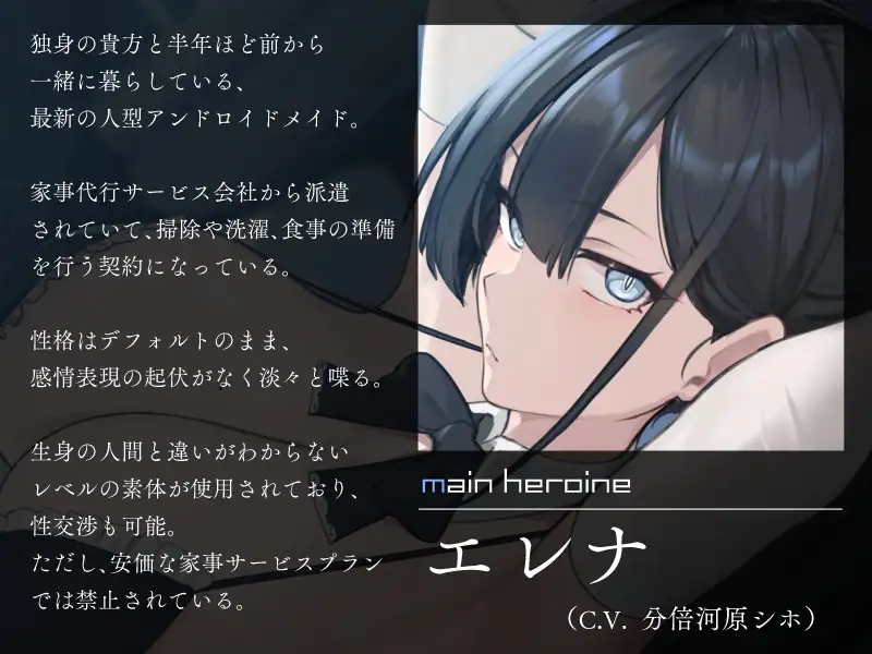 メイド型アンドロイドにお願いして、無機質な電子音でオナサポをしてもらう作品です。淡々と冷たく罵られながら、音に合わせて扱くオナニーをお楽しみください♪