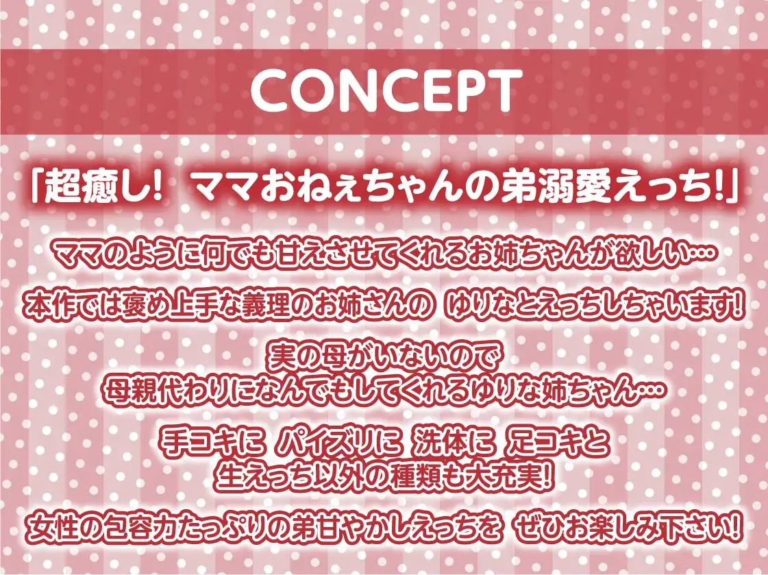 説明: 自室でオナニーしていると 部屋に入って声をかけてきた 義理の姉ゆりなに 見られたあなた... すぐ出ていこうとする ゆりなを引き止めると オナニーしているところを 見てもらえることに! さらにドキドキしてくれるなら 何でもしてあげると 手コキもしてくれる! 甘やかされながら パイズリフェラもされ 童貞卒業もしてしまった... お風呂でも甘やかしてくれて...