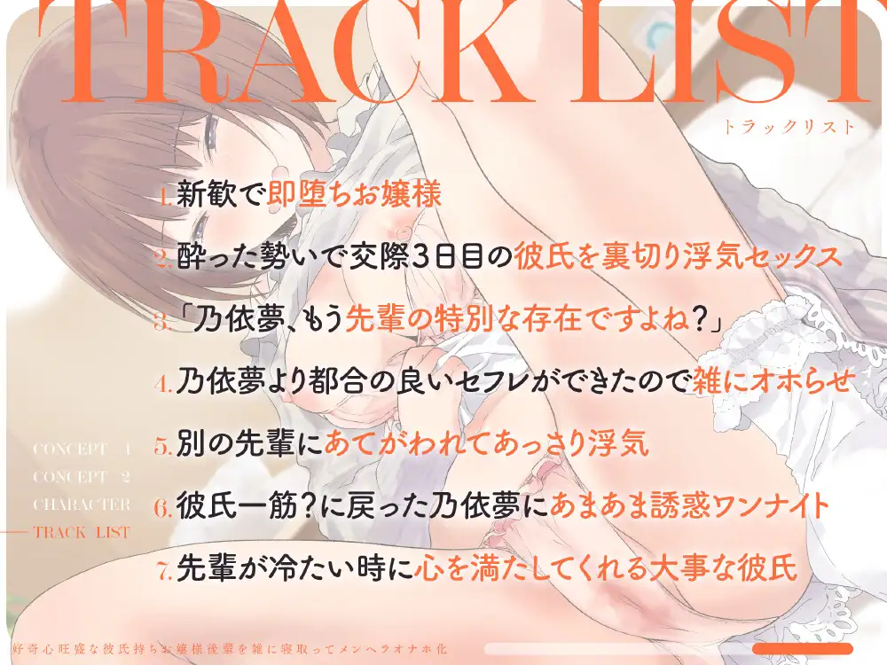 RJ01075166 - 好奇心旺盛な彼氏持ちお嬢様後輩を雑に寝取ってメンヘラオナホ化