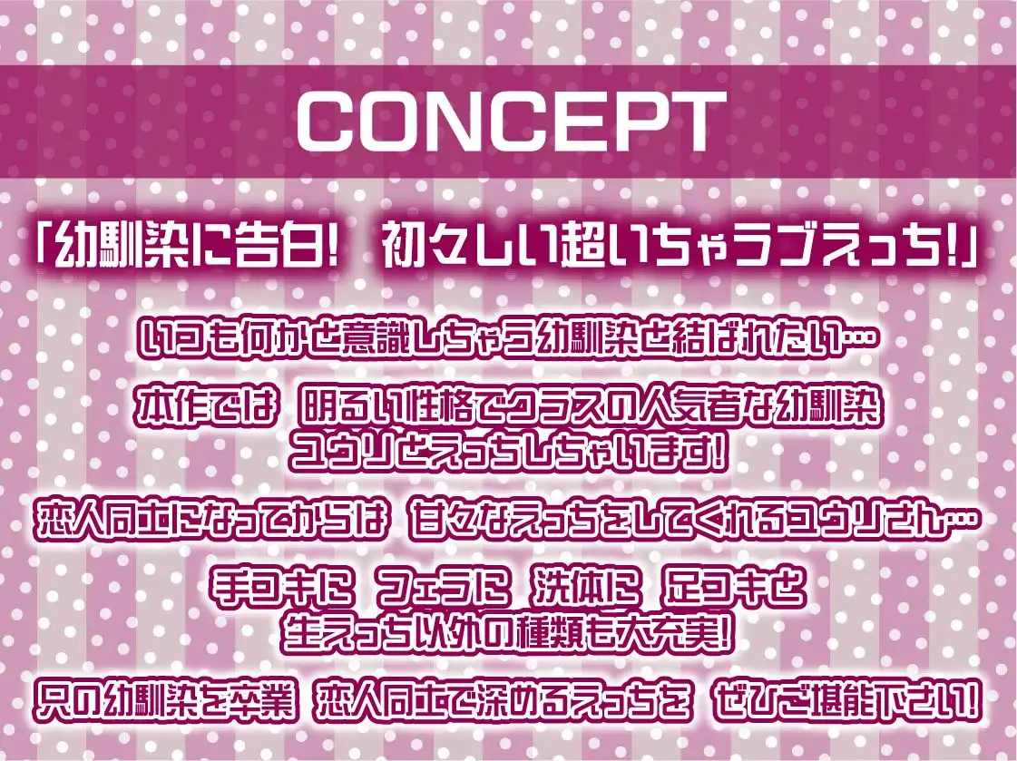 幼馴染ユウリの部屋へ 久々にやってきたあなた... 自分たちの親同士は 仲良く旅行に行っていて 今日は二人きり! ユウリにからかわれた勢いで つい告白をしてしまう! そして両想いで結ばれた後は えっちをすることに! 初々しくも甘々に 手コキにフェラに生えっち! お風呂でも体を洗ってもらって...