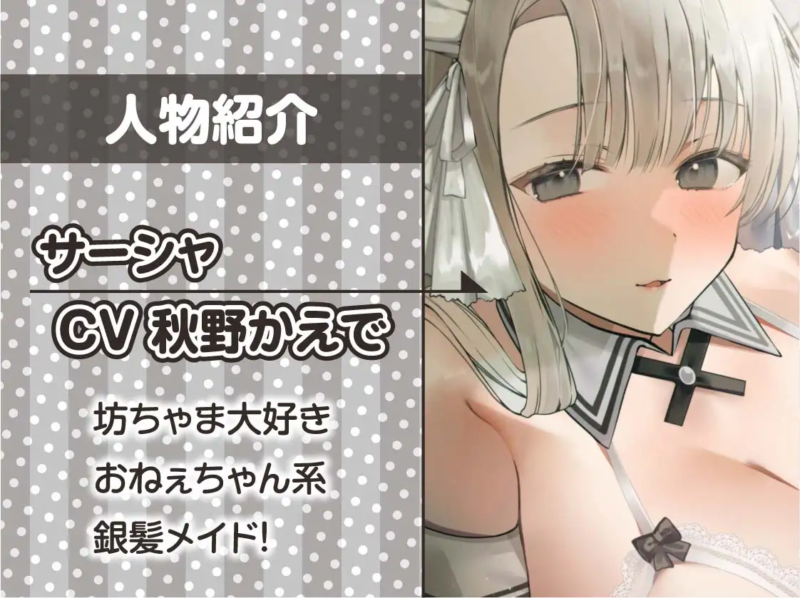 布団がモゾモゾしたので 早朝目を覚ますと そこにいたのはサーシャ... 彼女は銀髪 おねぇちゃんメイドで 子作りの練習を させてくれる! 起きたてで体が あまり動かない中 手コキにフェラを してくれるサーシャ! そして甘やかされながら 生えっちもしてしまう! 別の日には パイズリフェラを してくれて...