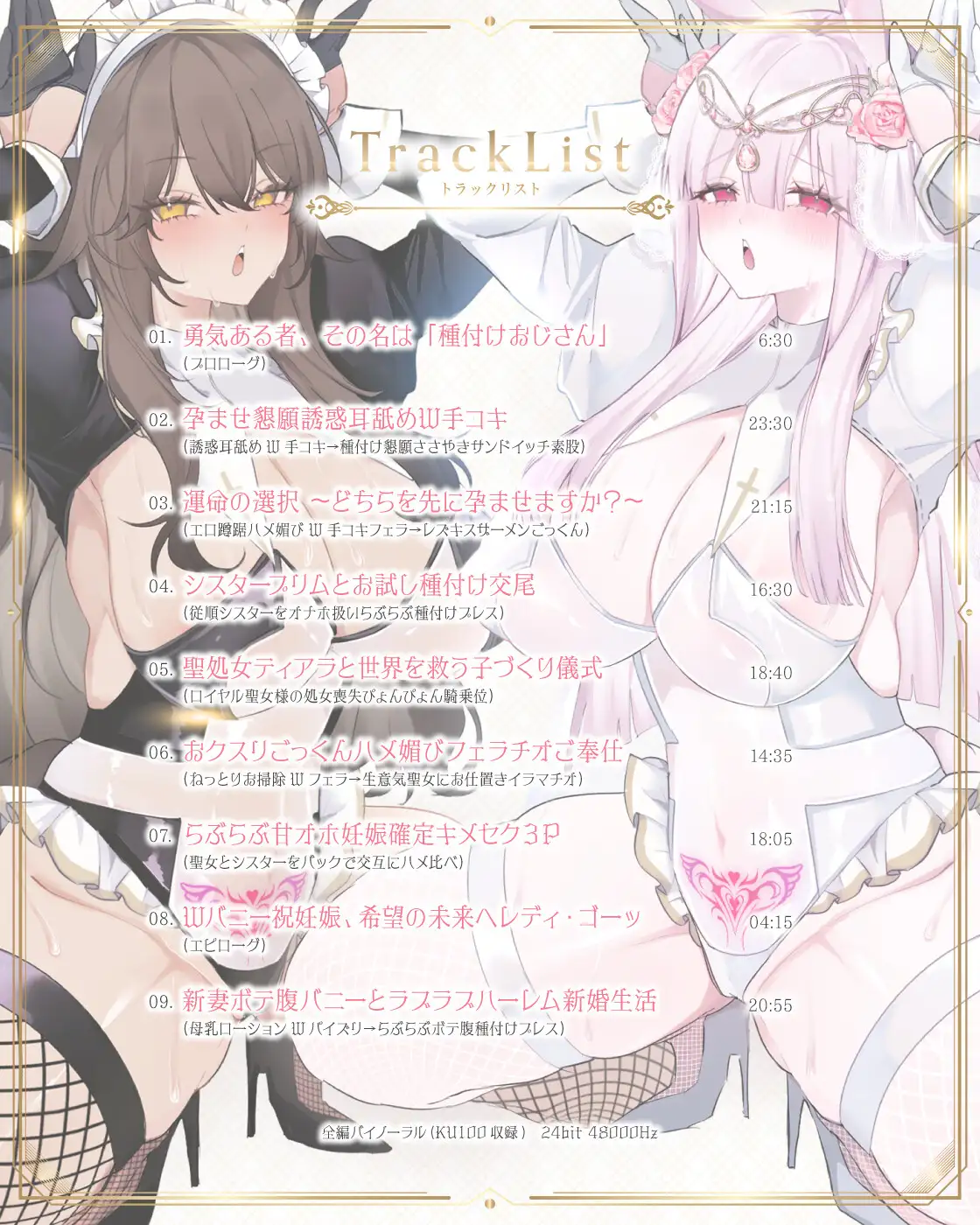 聖女「ティアラ」とシスター「プリム」、ふたりのドスケベバニーにより異世界召喚された貴方が、種付け懇願されるまま彼女たちを孕ませるおはなし【KU100収録】