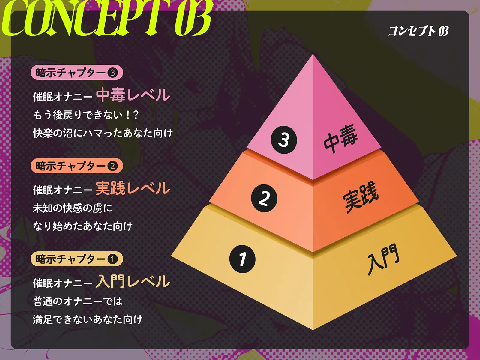 「やってはいけない」禁じられるほど、欲求は強くなる。本能を刺激され、頭も身体もぽわぽわトロけてしまう「ドスケベ暗示」の力で、超気持ちいい発情シコシコ絶頂射精。あなたの「日常」が変わってしまう快楽まみれの「暗示」体験!!!