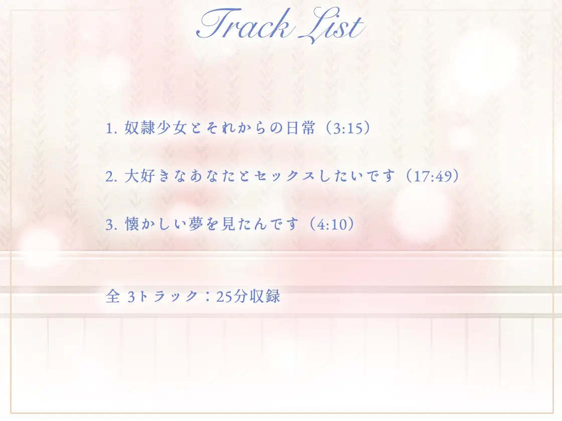 奴○少女との純愛いちゃらぶエッチ作品です。幸薄な奴○少女が、どんどんラブラブ&エロエロになっていく日常や濃厚エッチを、 小花衣こっこ様のボイスで楽しむことができます。
