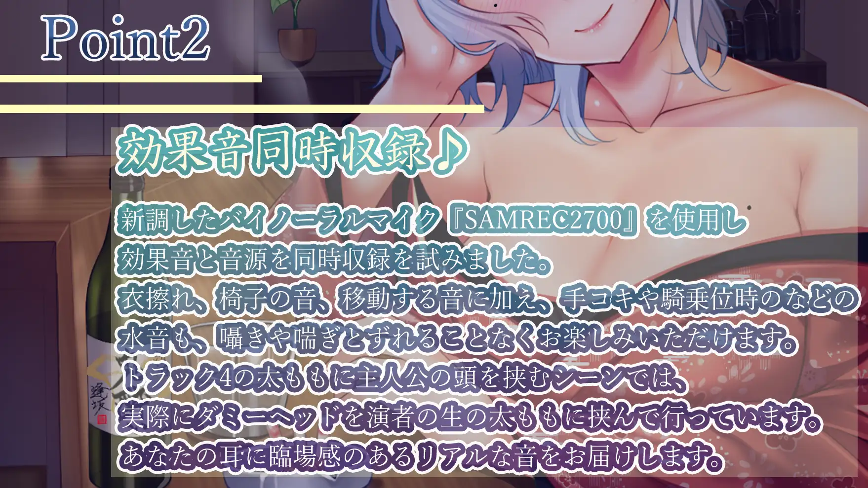 酔いどれお姉ちゃんのシリーズ第二弾!今回は日本酒の姐さんです!SAMREC2700のバイノーラルマイクで収録しました。