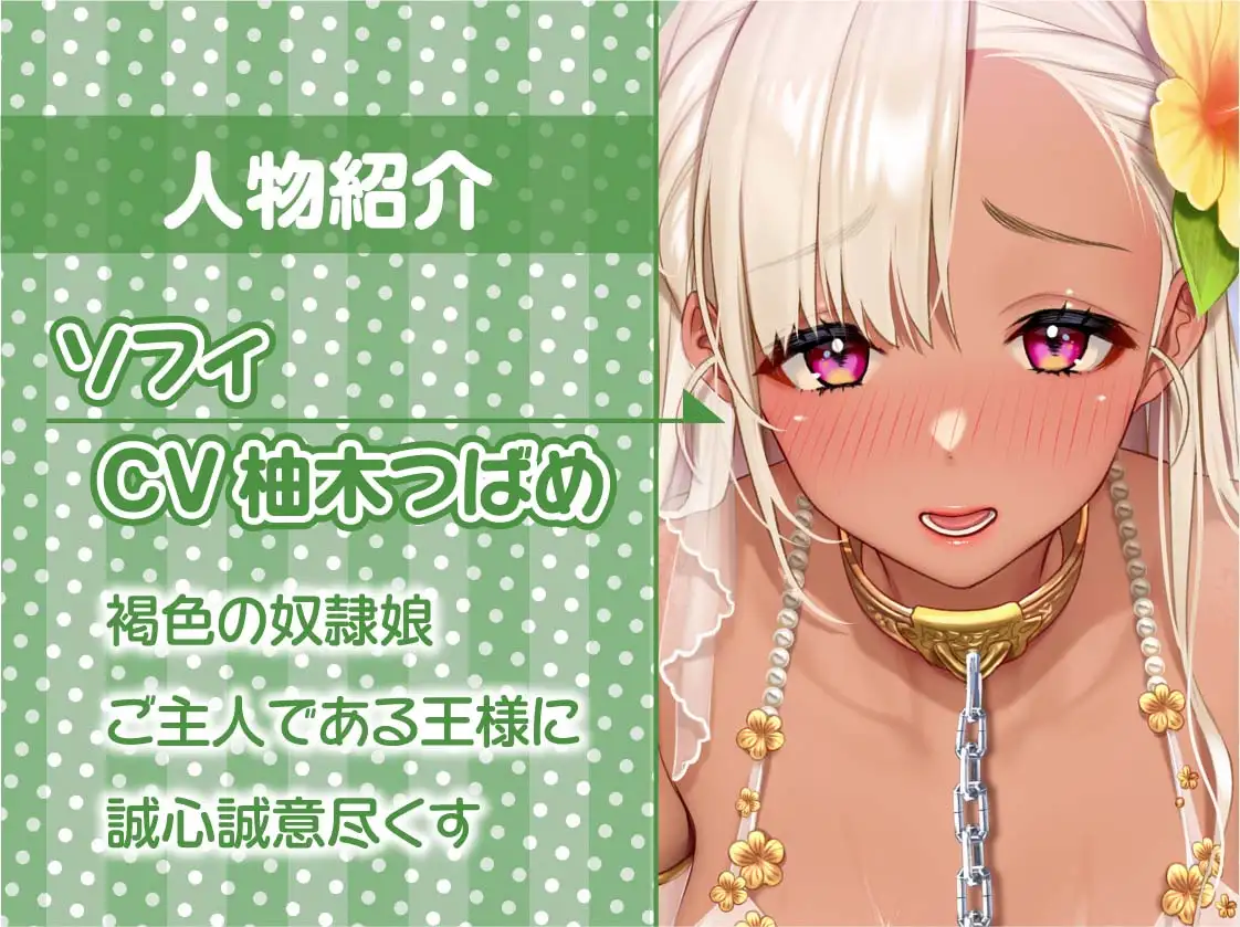 王様に買われた 褐色の奴○ソフィ お風呂に洋服に 温かいご飯を提供され 感激してしまう 体くらいでいか おかえしができないと ベットへ誘うソフィ フェラに手コキに 処女喪失えっち... 危険日でも ラブラブあまあまに えっちして...